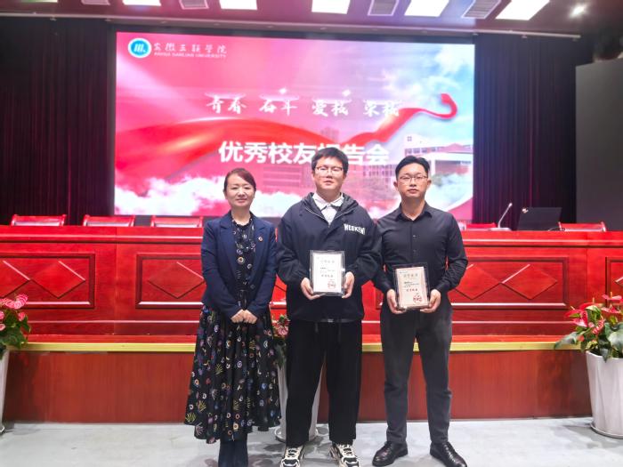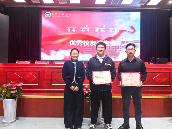 会上,洪梅为孙猛猛、储俊峰颁发优秀校友荣誉证书,工学部党委副书记、学管主任许群为他们颁发就业创业校外导师聘书。