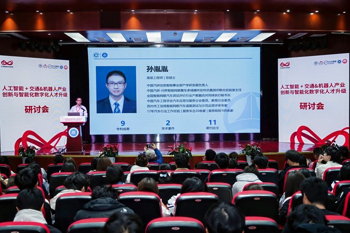 我校还举办了“人工智能+交通 & 机器人产业创新与智能化数字化人才升级”高质量研讨会。华为技术有限公司、中国汽车工程研究院股份有限公司、中国机械工业出版社等单位嘉宾,分别围绕人工智能技术应用、智能网联汽车测试与仿真、智能驾驶与具身智能产业实践及人才培养,进行精彩分享。