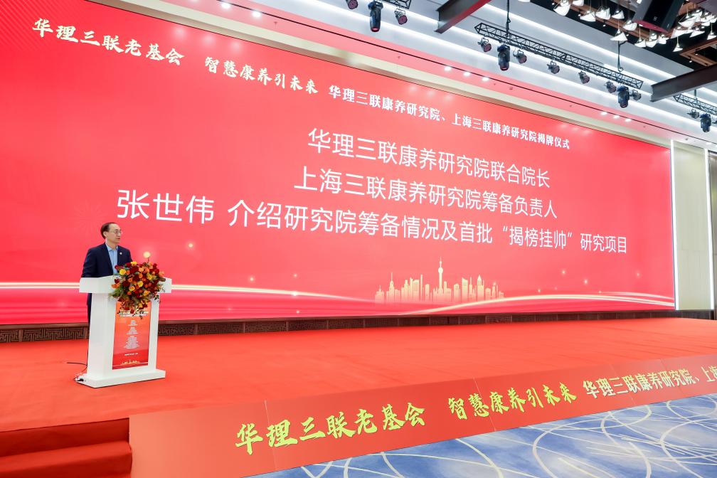 华理三联康养研究院联合院长、上海三联康养研究院院长张世伟介绍研究院筹备情况及首批“揭榜挂帅”研究项目。