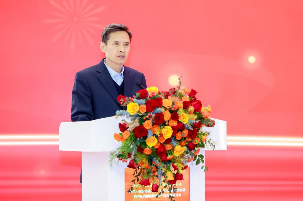 金会庆致欢迎辞。他代表研究院向莅临本次活动的领导嘉宾、专家学者表示欢迎,向对研究院成立给予大力支持与指导的上海市民政局、闵行区人民政府、吴泾镇人民政府、上海大零号湾投资发展(集团)有限公司、上海市养老科技产业园等单位致以感谢。他表示,研究院的成立是三联“科技报国”初心在老龄化时代的生动延续,是三联35年“产学研”一体化发展的又一硕果,更是主动响应国家战略、履行社会责任、汇聚行业力量、推动经济社会高质量发展的具体实践。华东理工大学、安徽三联集团、中国老龄事业发展基金会三方聚力,共同构建“科技-产业-政策-服务”四维融合的生态体系,打造集技术研发、成果转化、人才培养、社会服务于一体的综合性创新平台,共同承载推进长三角区域养老服务一体化的重要使命。