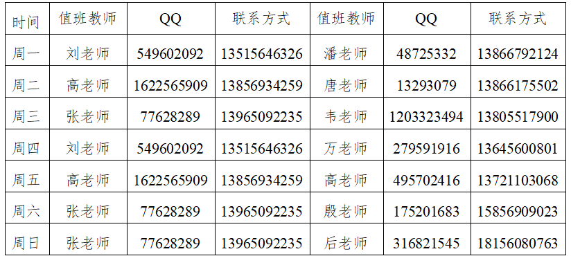 请有辅导需求的同学,使用本人QQ号实名添加值班教师QQ号(添加好友时必须备注姓名、学号和专业班级等信息)。值班教师在接到来访者的好友申请后,经审核信息无误后将验证好友通过,之后根据具体情况帮同学安排心理辅导事宜。或者直接拨打值班教师电话安排心理辅导事宜。