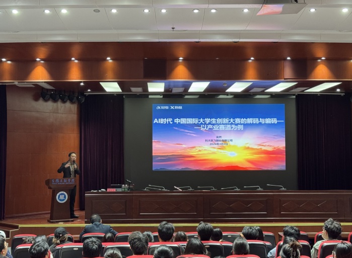 为系统备战2026年中国国际大学生创新大赛,4月8日下午,学校特邀科大讯飞产教融合生态总监吴然在图书馆学术报告厅作专题指导。各院部竞赛负责人、指导教师、参赛学生及师生素质能力发展中心相关人员近300人参会。
